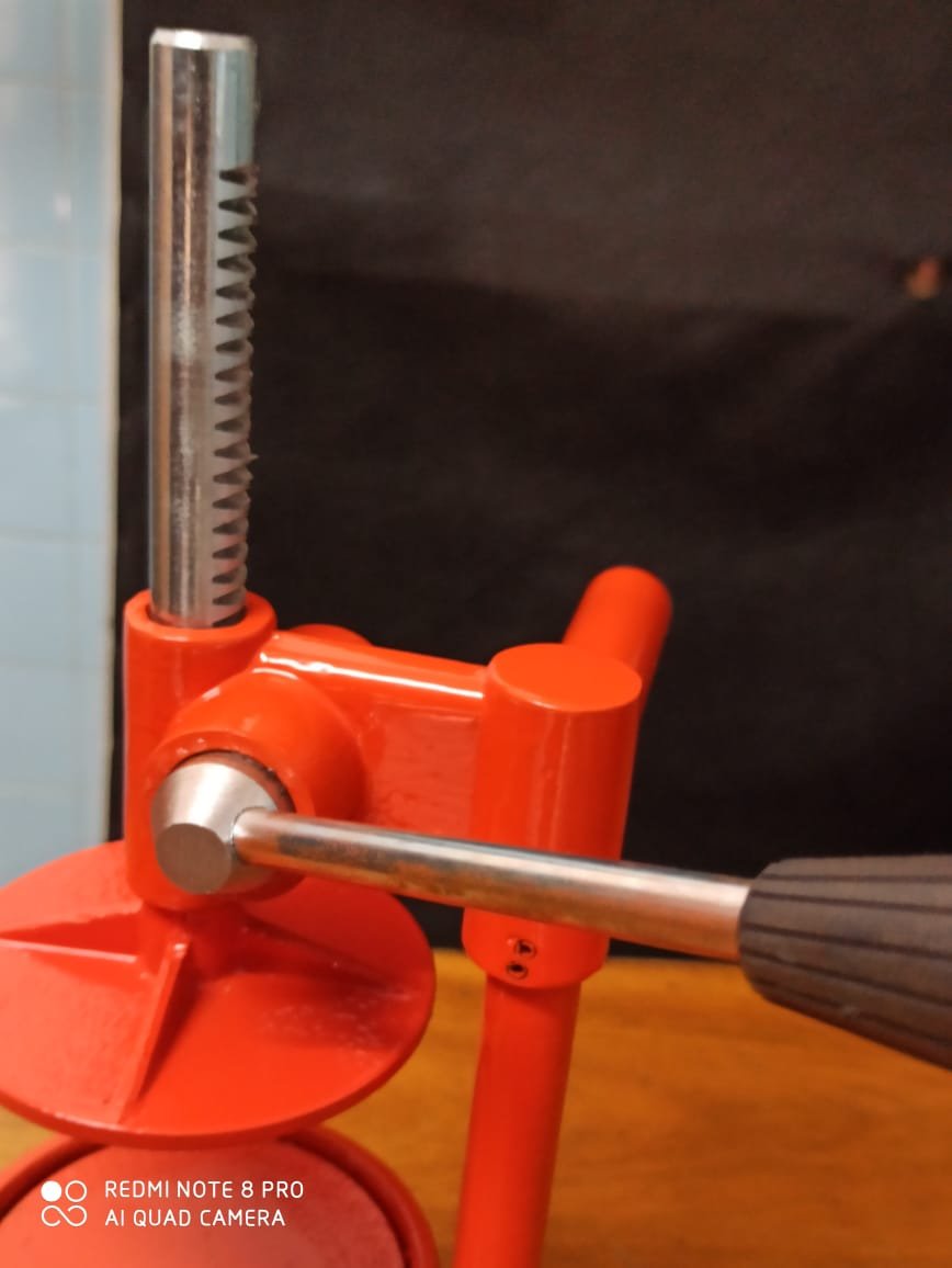 -Columna central y cremallera de acero trefilado macizo, ambos cromados y tratados térmicamente para su mayor durabilidad.