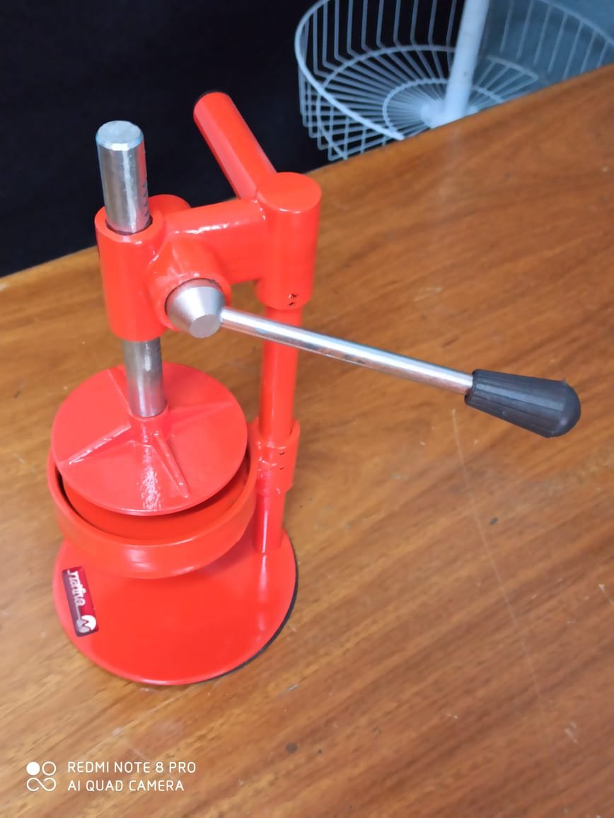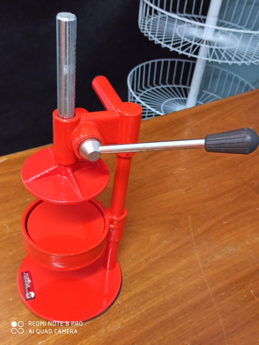 Ágil accionamiento manual a piñón y cremallera para un rápido trabajo y hermético presionado de la carne logrando una buena forma para su presentación y sellado.